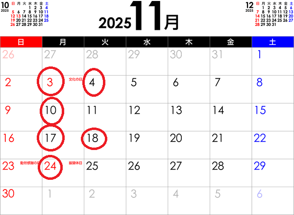 ★11月のスケジュール (keiko秋季休暇)